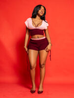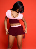 Rovella is a refined knit ensemble crafted with attention to detail. The v neck crop top and tailored high-waist shorts create a graceful, elongated silhouette, offering both comfort and sophistication.